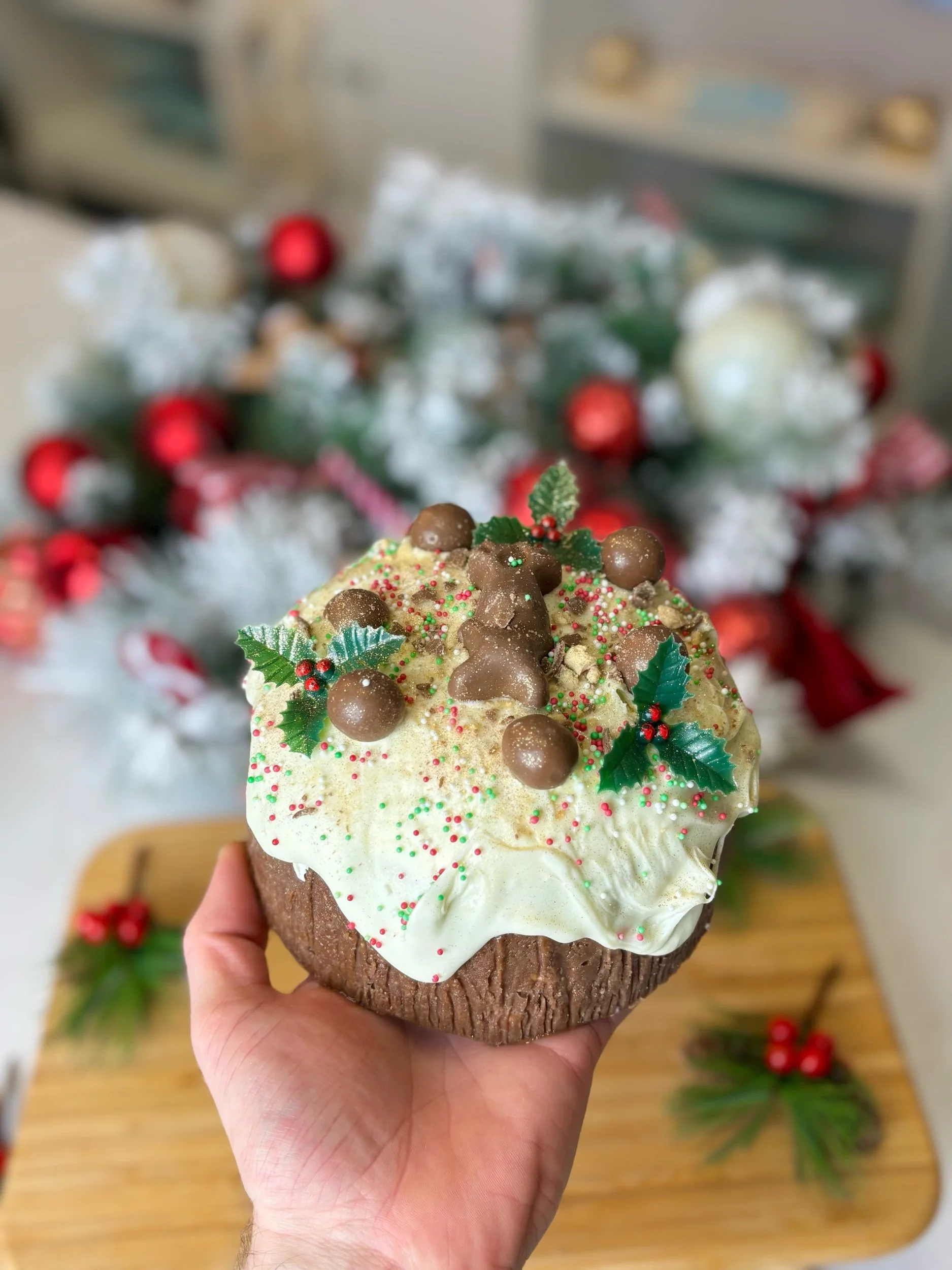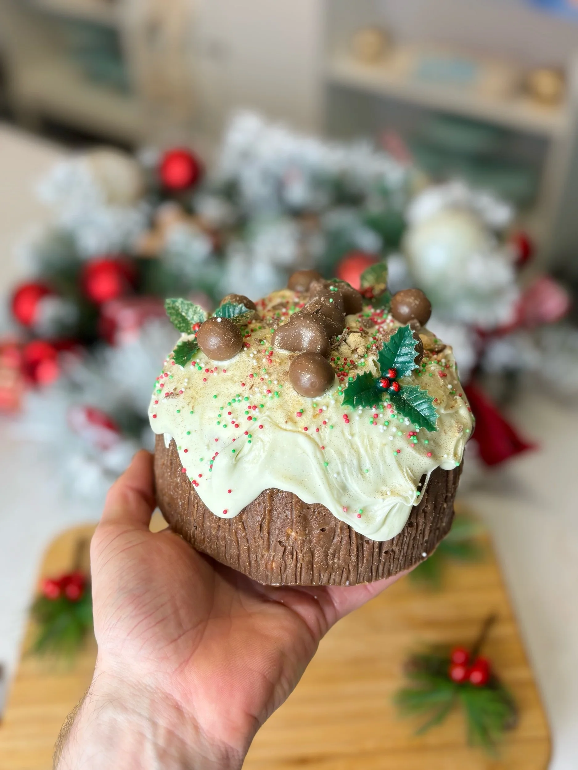 Our delicious Malteser Slice traybake reimagined as a classic Christmas Pudding